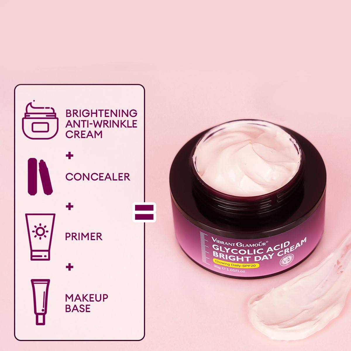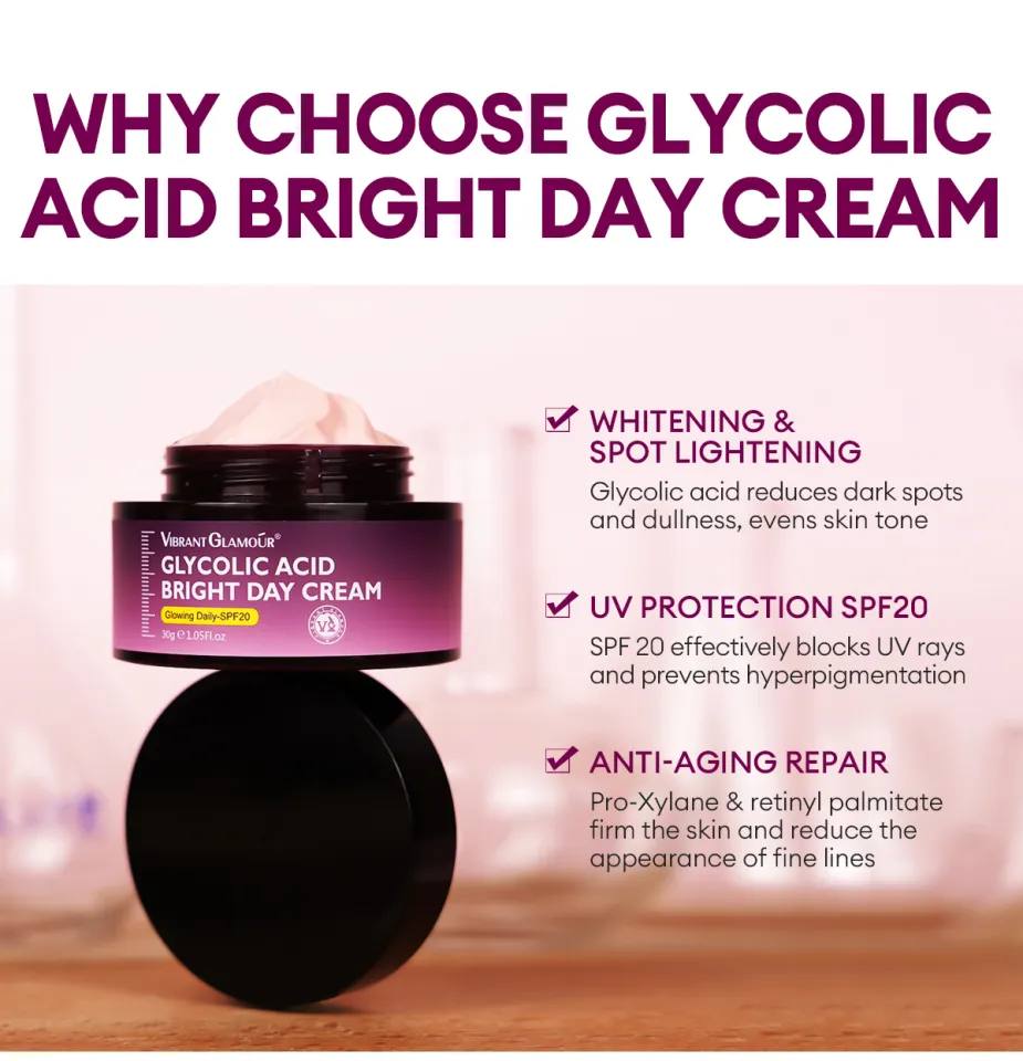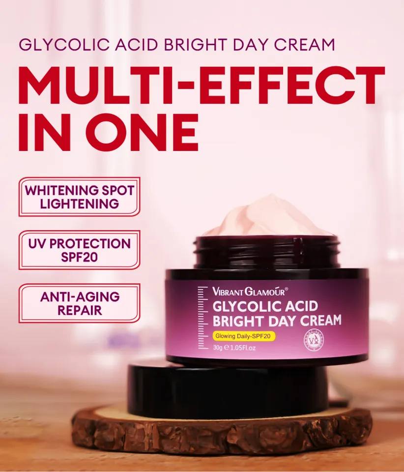کرم روز VIBRANT GLAMOUR گلیکولیک اسید SPF20 •ضد لک •دارای SPF20 •روشن کننده پوست •مرطوب کننده •حجم30 گرم •ضدپیری